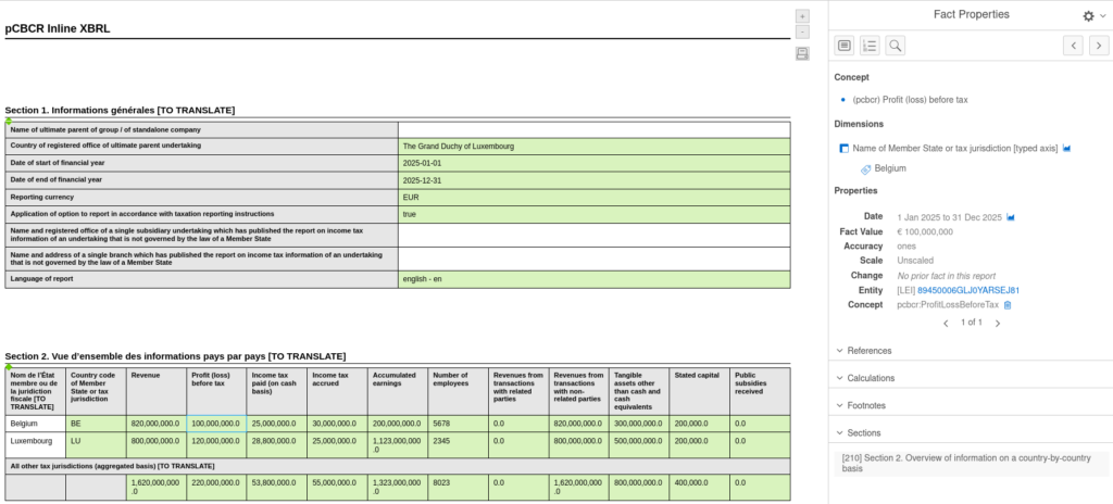 Moreover, Arevio CbCR Edition also generates a CbCR iXBRL report that complies with the layout given by the Implementing Regulation (EU) 2024/2952. The visual branding can be adapted to the marketing needs of the undertaking and to some extend supplemental text or images specific to the undertaking can be added.