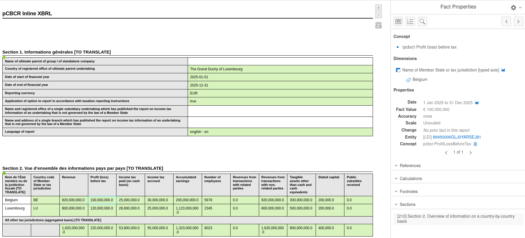 Creation and edition of CbCR iXBRL reports